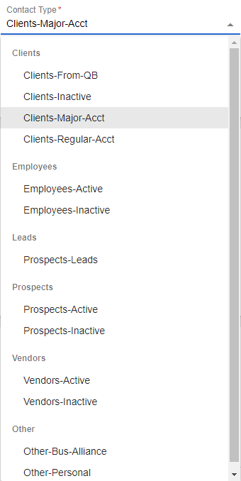 Throughout ResultsCRM, drop-down lists can be viewed by selecting the drop-down icon to display a list reflecting the corresponding lookup table.